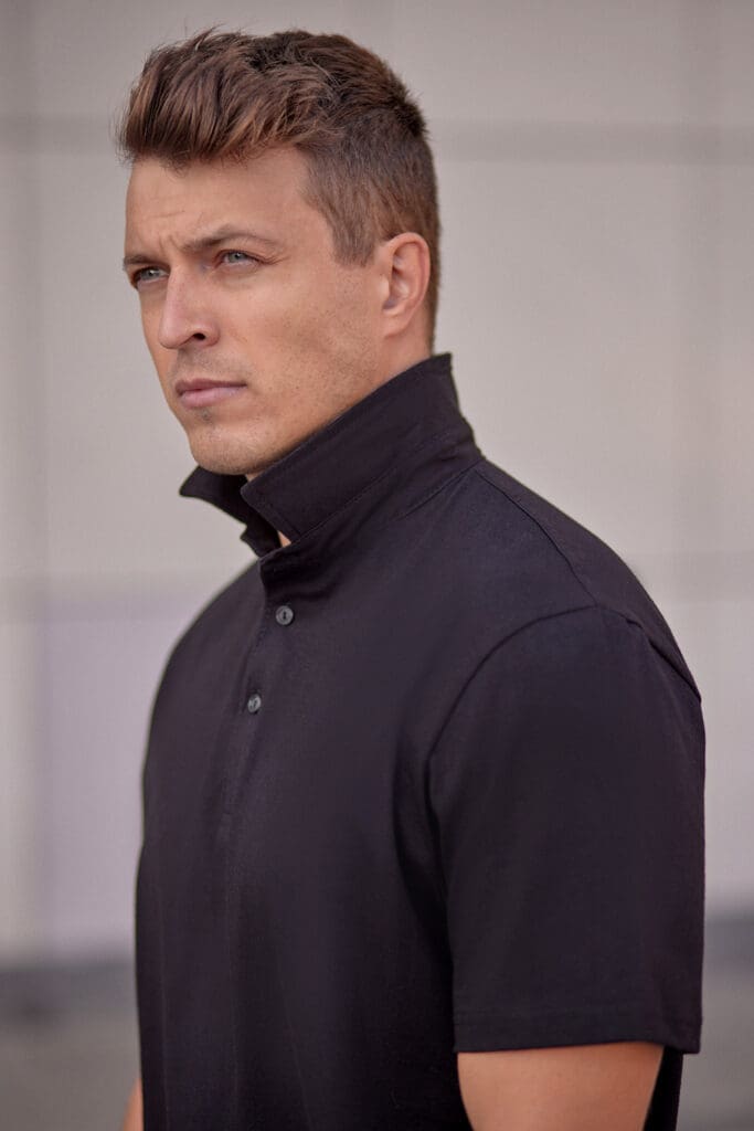 - Elegant polo shirt with stand-up collar